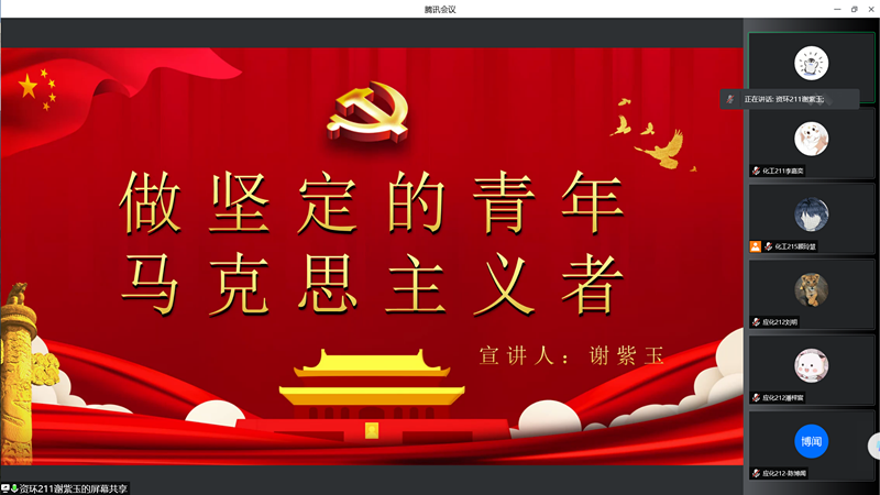 為了讓同學們更加深入地了解馬克思主義,領(lǐng)悟馬克思主義對新中國的影響,貫徹落實習近平新時代中國特色社會主義思想,幫助同學們樹立正確世界觀、人生觀、價值觀,4月25日,我院組織學生開展石化青年說——做堅定的青年馬克思主義者。本次會議由資環(huán)211謝紫玉主講。