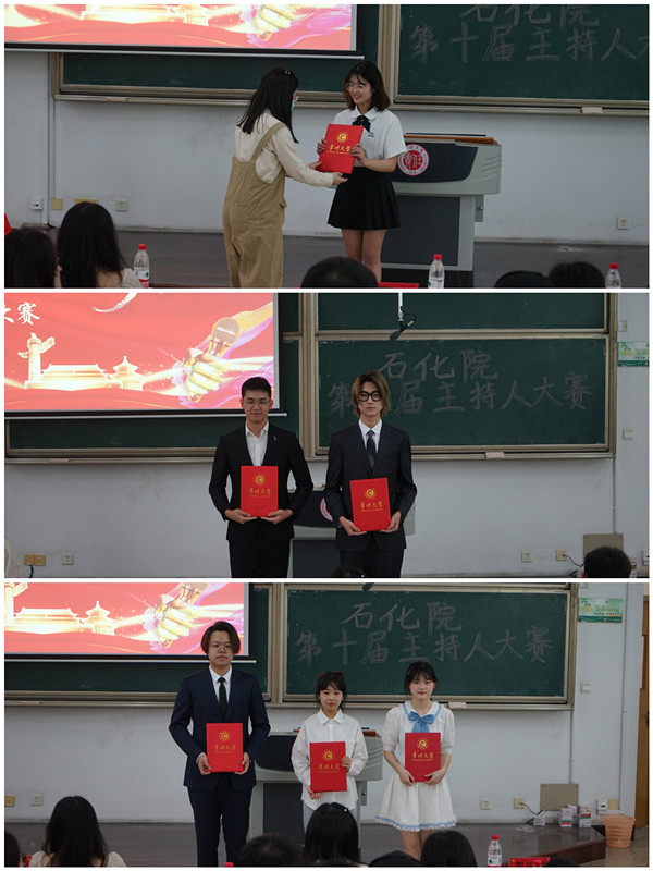 經(jīng)過前期初賽選拔,共六位選手進(jìn)入本次決賽。他們以不同的主題侃侃而談:應(yīng)化212陳閆明宇通過《青年大學(xué)習(xí)家鄉(xiāng)特別版》帶大家認(rèn)識(shí)自己的家鄉(xiāng),美麗的海濱城市、浪漫之都——大連;能化211蔡伽豪將老一輩共產(chǎn)黨員為建設(shè)中國(guó)共產(chǎn)黨的努力展現(xiàn)得淋漓盡致,希望當(dāng)代青年不斷增強(qiáng)“守初心、擔(dān)使命”的思想意識(shí)和行動(dòng)自覺;作為美食主播,能化212張厚盛通過《舌尖上的美味——廣西篇》呈現(xiàn)給大家有著飲食王國(guó)的美譽(yù)的中國(guó)美食文化;化工215郭慧慧帶大家認(rèn)識(shí)了一位網(wǎng)紅,她將讀書之氣帶給我們,點(diǎn)點(diǎn)星火傳出了她自己的光芒;食品211李欣宇基于《送你一朵小紅花》這部電影,倡導(dǎo)愛與珍惜;化工214李芝穎由藝術(shù)鑒賞帶大家走進(jìn)故事背后的真相,了解一段有關(guān)中國(guó)文化征服西方世界的長(zhǎng)達(dá)八百年的歷史。在即興評(píng)述的環(huán)節(jié),六位選手現(xiàn)場(chǎng)抽取自己的主題,以優(yōu)秀的表現(xiàn)、沉穩(wěn)的心態(tài)充分展示自己的主持功底。最終,化工215郭慧慧榮獲一等獎(jiǎng);能化212張厚盛、應(yīng)化212陳閆明宇榮獲二等獎(jiǎng);能化211蔡伽豪、食品211李欣宇、化工214李芝穎榮獲三等獎(jiǎng)。