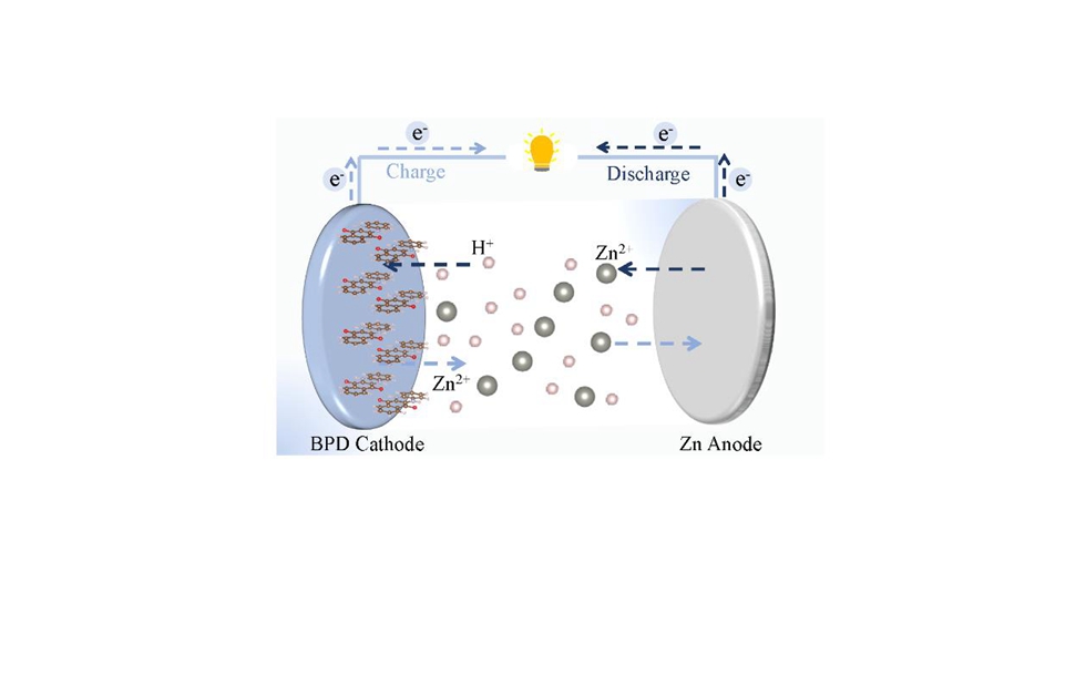 有機(jī)陰極材料由于其可設(shè)計(jì)的分子結(jié)構(gòu)和不同的氧化還原基團(tuán)而被廣泛用于水性鋅離子電池(ZIB)。由于最大化每分子量氧化還原活性基團(tuán)的數(shù)量是增加電極材料理論比容量的一種有前途的方法,因此設(shè)計(jì)和合成具有豐富氧化還原基團(tuán)的低分子量和高穩(wěn)定性陰極材料非常重要。我院曹劍瑜-許娟團(tuán)隊(duì)報(bào)道了一種新的π-共軛N-雜環(huán)化合物陰極材料——苯并[b]吩嗪-6,11-二酮(BPD),它將醌與吩嗪作為雙氧化還原活性部分結(jié)合。BPD陰極充分利用了氧化還原活性中心(100%的容量利用率),表現(xiàn)出較高的比容量和能量密度。同時(shí),通過(guò)原位表征、電化學(xué)實(shí)驗(yàn)和DFT計(jì)算研究了BPD在充放電過(guò)程中的電荷存儲(chǔ)機(jī)制,并解釋了對(duì)完美四電子轉(zhuǎn)移的理解。