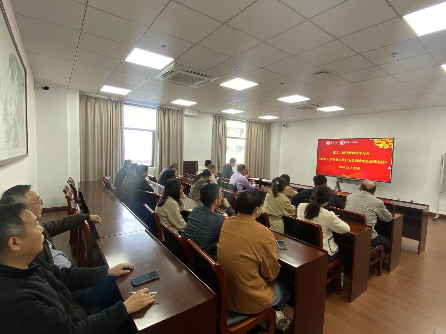 為進(jìn)一步提高教師職業(yè)道德水平,加強(qiáng)師德師風(fēng)建設(shè),2025年3月24日,我院化工、能化教研室集體學(xué)習(xí)《常州大學(xué)師德失范行為負(fù)面清單及處理辦法》,化工教研室、能化教研室教師參加會議。