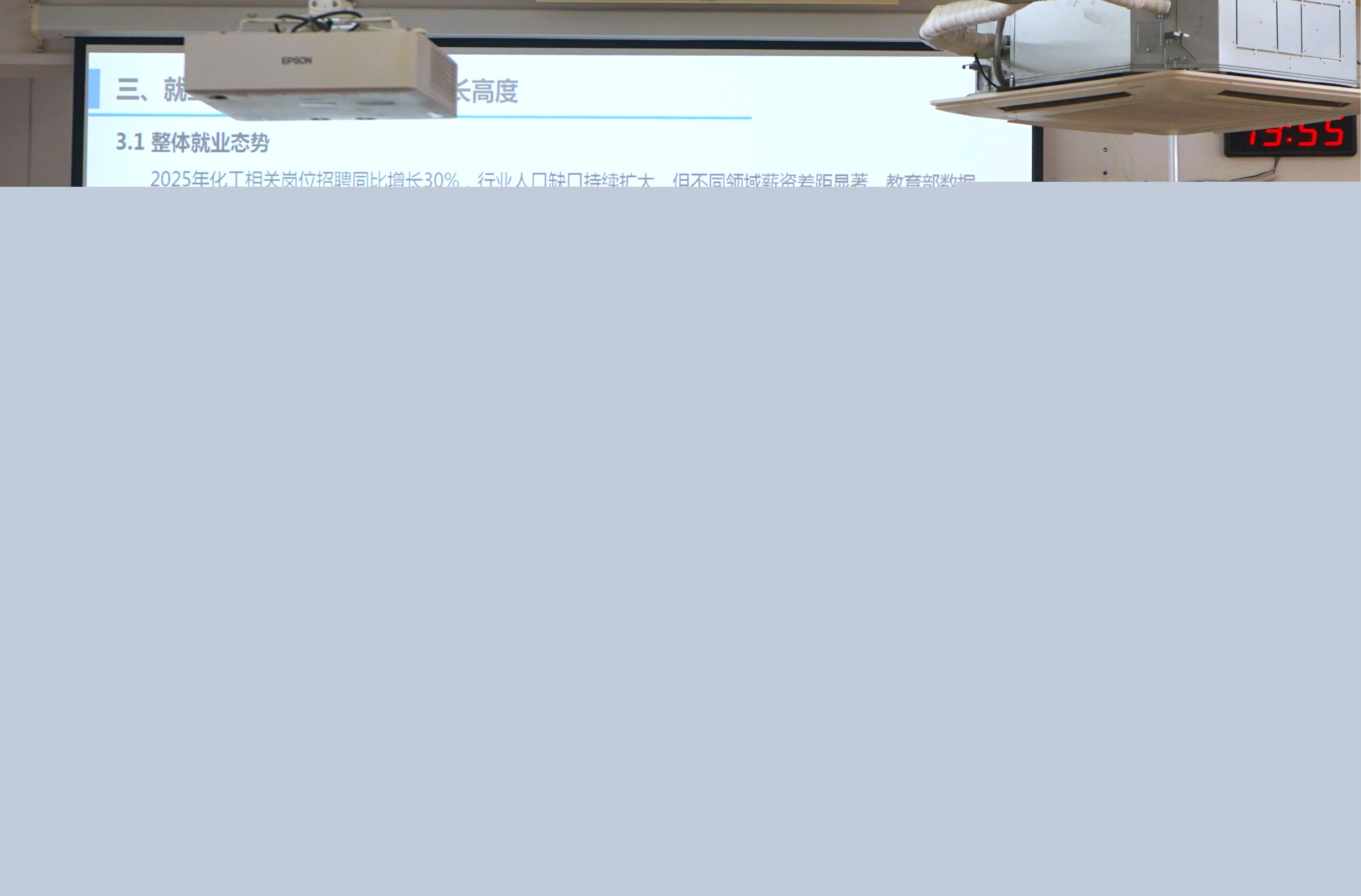 本次講座圍繞石化企業(yè)的招聘要求、行業(yè)發(fā)展現(xiàn)狀、職業(yè)發(fā)展建議等方面展開(kāi)。三位校友首先為同學(xué)們解析了當(dāng)前石化行業(yè)的招聘趨勢(shì)、招聘流程和具體要求,并結(jié)合他們所在企業(yè)和相關(guān)領(lǐng)域的詳實(shí)產(chǎn)業(yè)數(shù)據(jù),深入剖析了化工相關(guān)產(chǎn)業(yè)的發(fā)展現(xiàn)狀。此外,校友們結(jié)合他們的求學(xué)和工作經(jīng)歷,給學(xué)弟學(xué)妹們分析了化工相關(guān)專(zhuān)業(yè)的就業(yè)現(xiàn)狀和職業(yè)發(fā)展前景,幫助同學(xué)們厘清發(fā)展路徑、做好職業(yè)規(guī)劃。最后,他們寄語(yǔ)學(xué)弟學(xué)妹們要筑牢專(zhuān)業(yè)知識(shí)基礎(chǔ),務(wù)必學(xué)好專(zhuān)業(yè)課程;要拓展視野,鼓勵(lì)大家積極參與科研項(xiàng)目、學(xué)科競(jìng)賽和社會(huì)實(shí)踐,提升解決復(fù)雜問(wèn)題的綜合能力;還要錘煉品格,培養(yǎng)吃苦耐勞、勇于擔(dān)當(dāng)?shù)穆殬I(yè)精神,并保持終身學(xué)習(xí)的習(xí)慣,以應(yīng)對(duì)行業(yè)的快速變革。他們的寄語(yǔ)情真意切,引發(fā)了在場(chǎng)同學(xué)的深深共鳴。