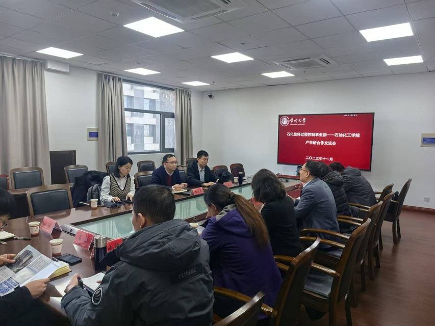 2025年11月26日下午,常州大學石油化工學院與石化盈科信息技術有限責任公司過程控制事業(yè)部(以下簡稱“石化盈科過控事業(yè)部”)開展產學研對接交流會。石化盈科過控事業(yè)部總經理王建平、總經理助理陳玉石,石油化工學院黨委書記業(yè)緒華、院長劉平、副院長黃薇、劉英杰及教師代表參加會議。