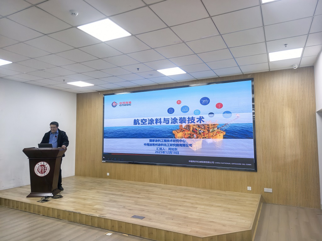 2025年12月18日,中海油常州涂料化工院腐蝕治理首席工程師狄志剛、涂料與防護(hù)工程研究院主任周如東應(yīng)邀為我院師生作學(xué)術(shù)報(bào)告,石油化工學(xué)院黨委書記業(yè)緒華、院長(zhǎng)劉平、學(xué)院骨干教師和研究生代表現(xiàn)場(chǎng)參會(huì)。報(bào)告會(huì)由劉平主持。