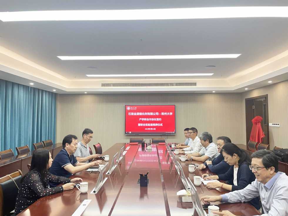9月24日,石首金源催化劑有限公司—常州大學(xué)產(chǎn)學(xué)研合作協(xié)議簽約暨聯(lián)合實(shí)驗(yàn)室揭牌儀式在常州大學(xué)成功舉行。石首金源催化劑有限公司董事長(zhǎng)房擁軍、高級(jí)顧問(wèn)丁云龍、財(cái)務(wù)總監(jiān)沈建梅,常州大學(xué)原黨委書記、催化協(xié)同中心主任陳群研究員、產(chǎn)學(xué)研合作處處長(zhǎng)宋國(guó)強(qiáng)、石油化工學(xué)院院長(zhǎng)鐘璟、聯(lián)合所、設(shè)計(jì)院院長(zhǎng),催化協(xié)同中心副主任錢俊峰和部分科研人員參加活動(dòng),錢俊峰主持會(huì)議。