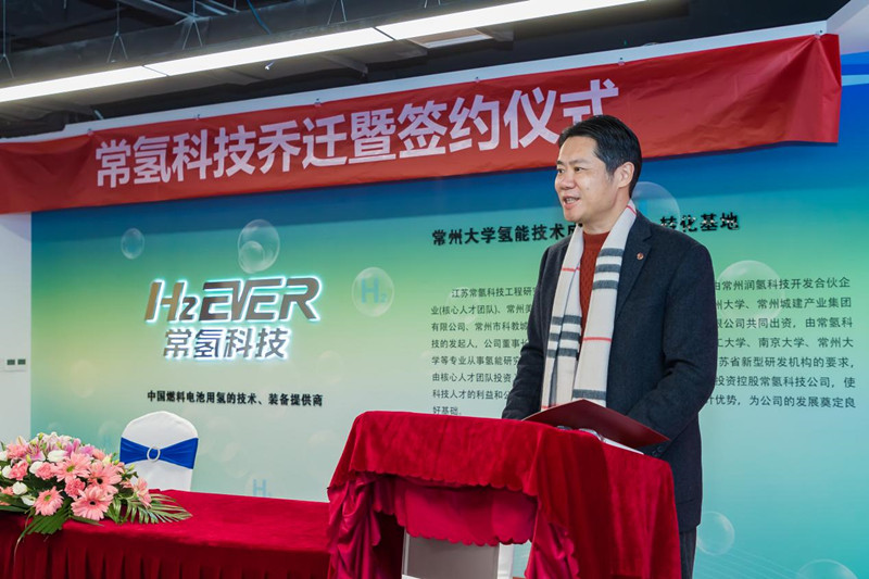 12月20日上午,常州大學(xué)孵化參股企業(yè)江蘇常氫科技工程研究院有限公司(以下簡稱“常氫科技”)舉行喬遷及簽約儀式,黨委副書記、校長陳海群,江蘇省化工行業(yè)協(xié)會會長趙偉建,常州市城市建設(shè)(集團(tuán))有限公司總經(jīng)理劉龍才,常州市科教城管委會副主任路軍方,常州科教城投資控股集團(tuán)有限公司黨委書記、董事長錢立鋒出席活動??平坛枪芪瘯?、常州大學(xué)、常州城建集團(tuán)、投資機(jī)構(gòu)等單位負(fù)責(zé)人參加活動。