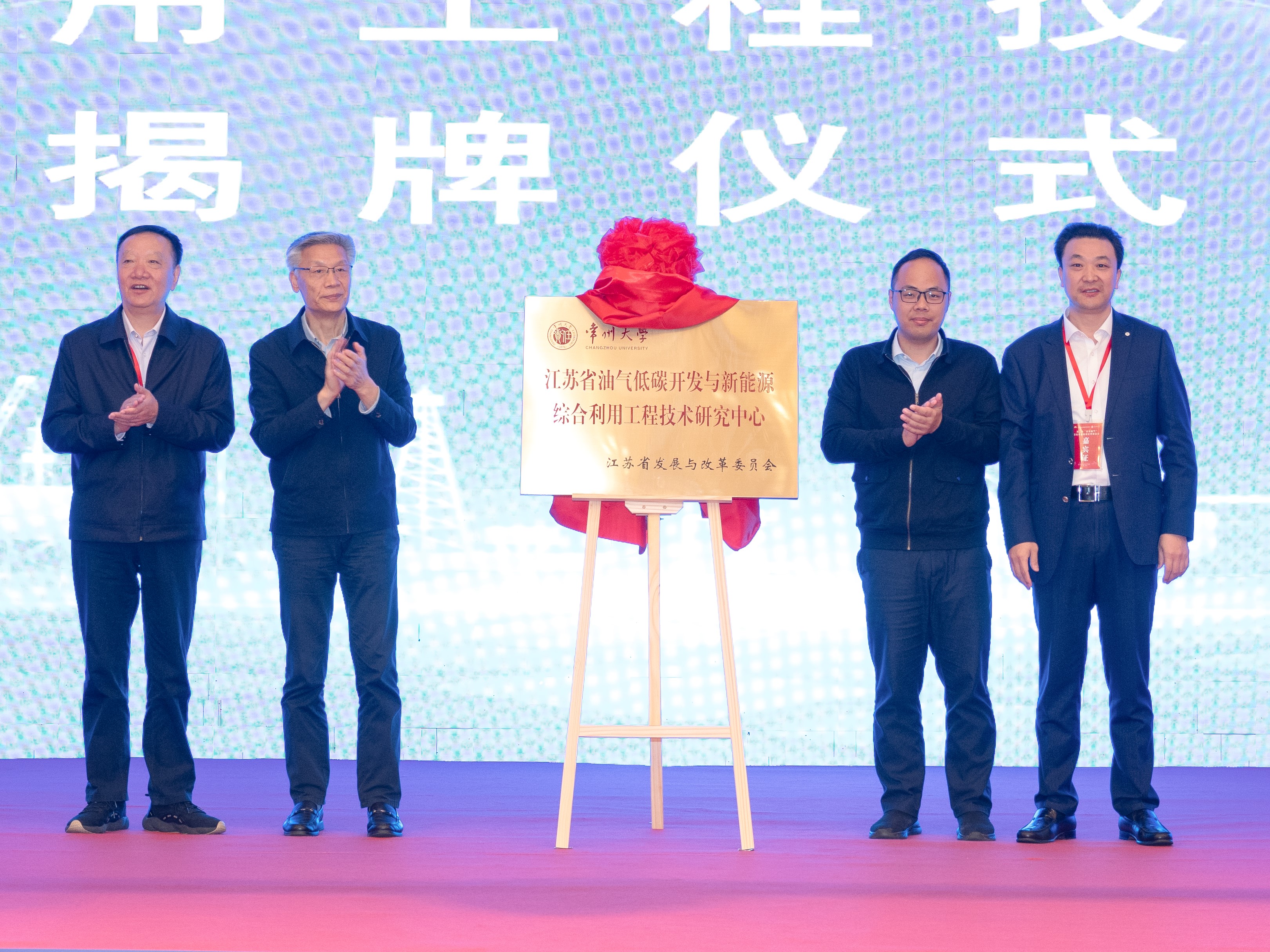 活動(dòng)中,領(lǐng)導(dǎo)專(zhuān)家為“江蘇省重點(diǎn)產(chǎn)業(yè)學(xué)院—能源低碳信創(chuàng)產(chǎn)業(yè)學(xué)院”“江蘇省油氣低碳開(kāi)發(fā)與新能源綜合利用工程技術(shù)中心”揭牌。