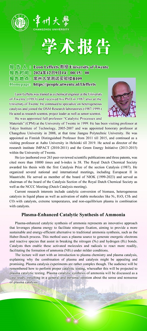 | 【學術報告】12月9日學術報告—Leon Lefferts教授、 Jimmy Alexander Faria Albanese教授 University of Twente |