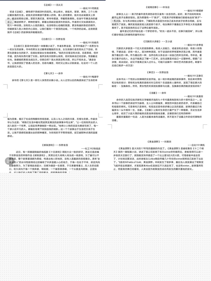 最美書評(píng)活動(dòng)是由同學(xué)們自發(fā)閱讀自己愛看、想看的書籍,并將自己關(guān)于書的體悟通過一小段文字表達(dá)出來。在比賽中,每個(gè)同學(xué)都踴躍參與,將自己愛看的書推薦給了大家,每一個(gè)書評(píng)的背后都是同學(xué)們對(duì)書自己獨(dú)到的見解。讓同學(xué)們可以在業(yè)余時(shí)間更好地享受生活,一壺茶、一本書,亦可以是一個(gè)悠閑的下午。