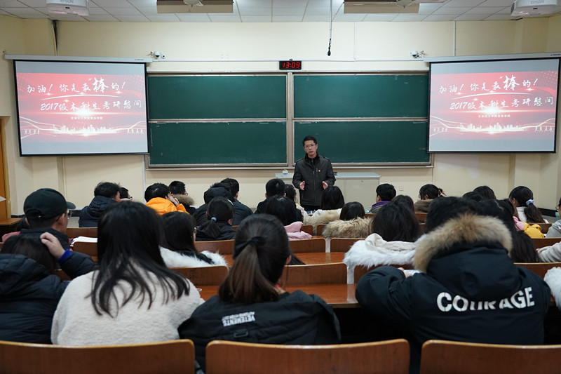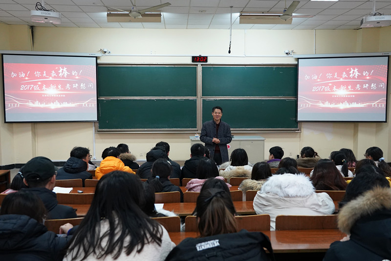 為堅定學(xué)生的考研信念,增強考研自信心,積極面對考研,緩解考研壓力,12月8日,我院在W7召開了2017級本科生考研慰問會,參加會議的有院黨委書記吳荷平、院長陳海群、副書記宣慧、副院長劉文杰、黃海、院關(guān)工委代表繆鳳仙、學(xué)院本科生輔導(dǎo)員以及2017級考研學(xué)子。