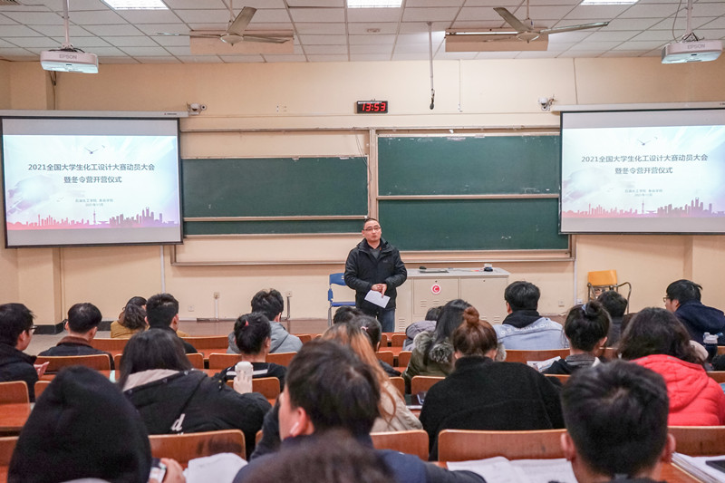 為進(jìn)一步培養(yǎng)學(xué)生的工程設(shè)計(jì)能力,籌備第十五屆全國(guó)大學(xué)生化工設(shè)計(jì)大賽,我院于12月21日下午在W5階舉辦2021全國(guó)大學(xué)生化工設(shè)計(jì)動(dòng)員大會(huì)暨冬令營(yíng)開(kāi)營(yíng)儀式,出席本次活動(dòng)的有校實(shí)驗(yàn)室建設(shè)與管理處處長(zhǎng)馬江權(quán)、學(xué)院黨委副書(shū)記宣慧、副院長(zhǎng)劉文杰、院長(zhǎng)助理周滿、專(zhuān)業(yè)輔導(dǎo)員及18級(jí)化工、能化全體學(xué)生。