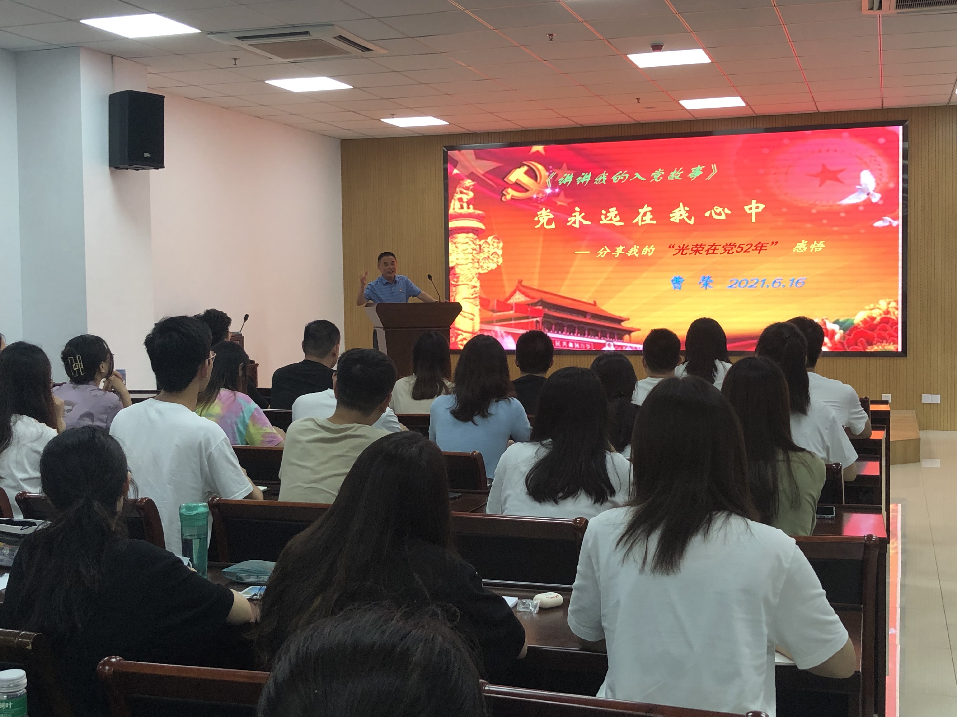 2021年6月16日,我院開展“奮楫揚帆 賡續(xù)前行”畢業(yè)班黨員主題黨課,全體畢業(yè)班黨員參加學習,發(fā)展對象觀摩學習,黨課由校關工委副主任曹榮主講。