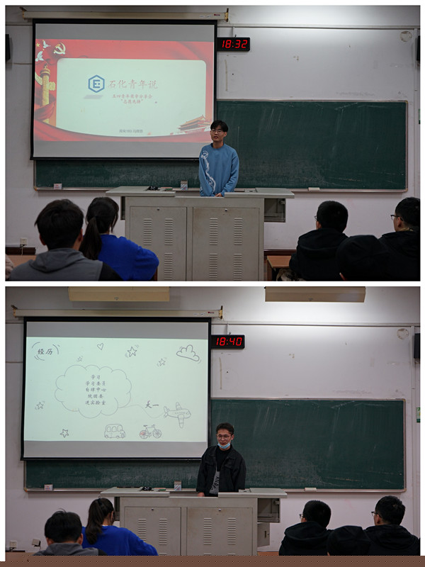 為展示新時(shí)代青年“聽黨指揮、矢志奮斗”的精神面貌,培養(yǎng)同學(xué)們“開拓進(jìn)取、積極向上”的品質(zhì),11月16日18:30,我院在w1202開展石化青年說(shuō)之五四獎(jiǎng)?wù)路窒頃?huì)。本次分享會(huì)由自強(qiáng)先鋒于威風(fēng)、志愿先鋒馮厚恩、創(chuàng)新先鋒王泳丹、團(tuán)建先鋒許涵僑主講。