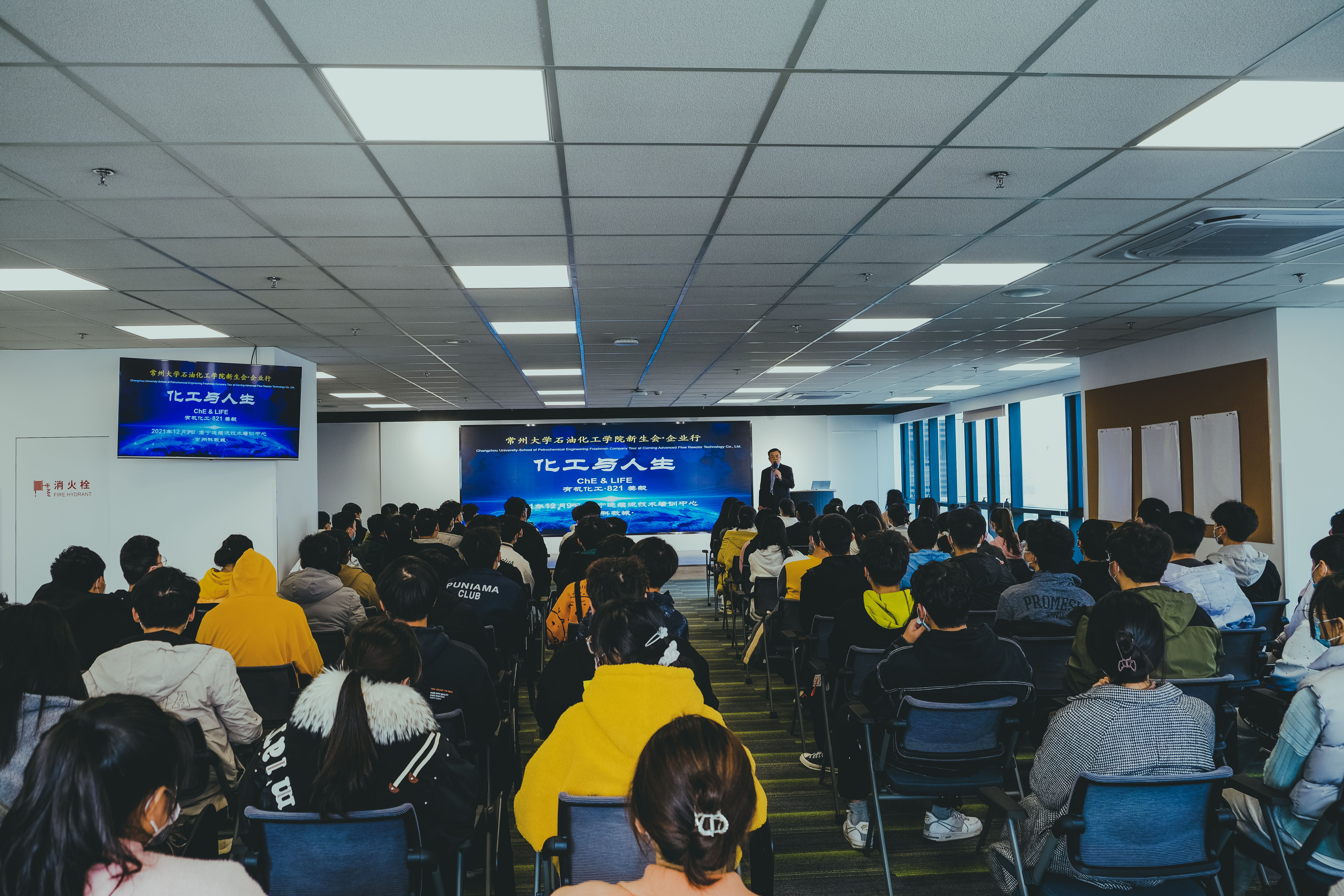 活動伊始,我校杰出校友康寧反應(yīng)器技術(shù)有限公司總裁兼總經(jīng)理姜毅博士為同學(xué)們做了“化工與人生”的報告,姜博士從選擇與決定這個話題開始,強調(diào)化學(xué)化工與人們的衣食住行息息相關(guān);隨后姜博士與大家分享了自己的求學(xué)經(jīng)歷,并鼓勵大家積極投身到化學(xué)化工行業(yè)中來;緊接著又展示了康寧公司幾大顛覆性創(chuàng)新技術(shù)在化工領(lǐng)域的應(yīng)用,不僅體現(xiàn)出創(chuàng)新技術(shù)對化工發(fā)展的推動作用,而且啟蒙了學(xué)生的創(chuàng)新思維;讓同學(xué)們更加明確了自己的學(xué)習(xí)方向,增強個人學(xué)習(xí)動力。接下來,同學(xué)們參觀了康寧AFR星云教學(xué)實驗室、研發(fā)實驗室、3D展廳和康寧文化墻,全方位地了解了康寧反應(yīng)器技術(shù)的產(chǎn)品及創(chuàng)新理念,感受到了康寧的匠心精神和人文魅力,更新了學(xué)生腦海中傳統(tǒng)的化工觀念。