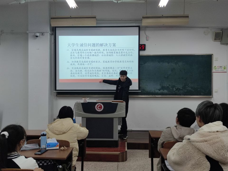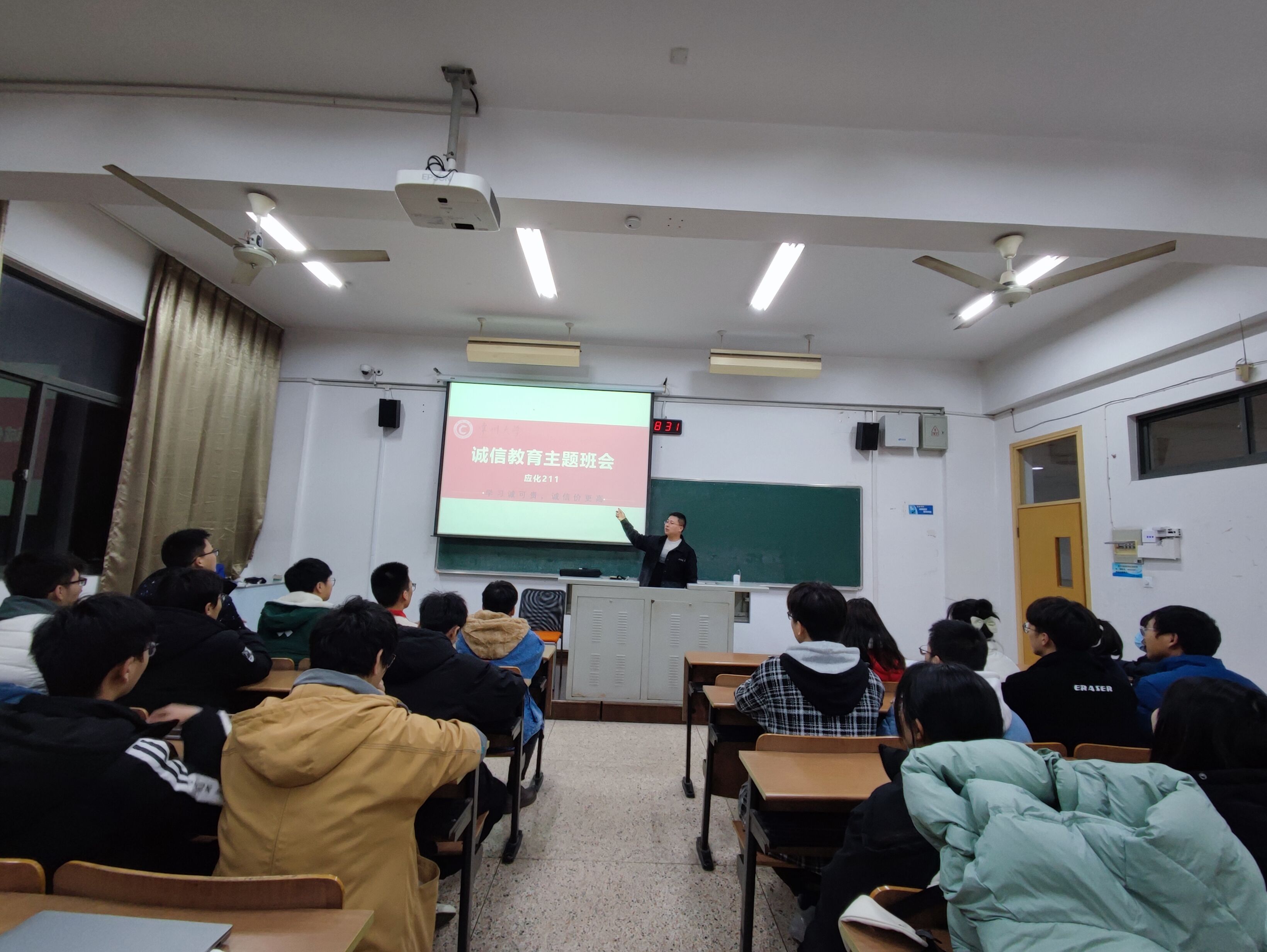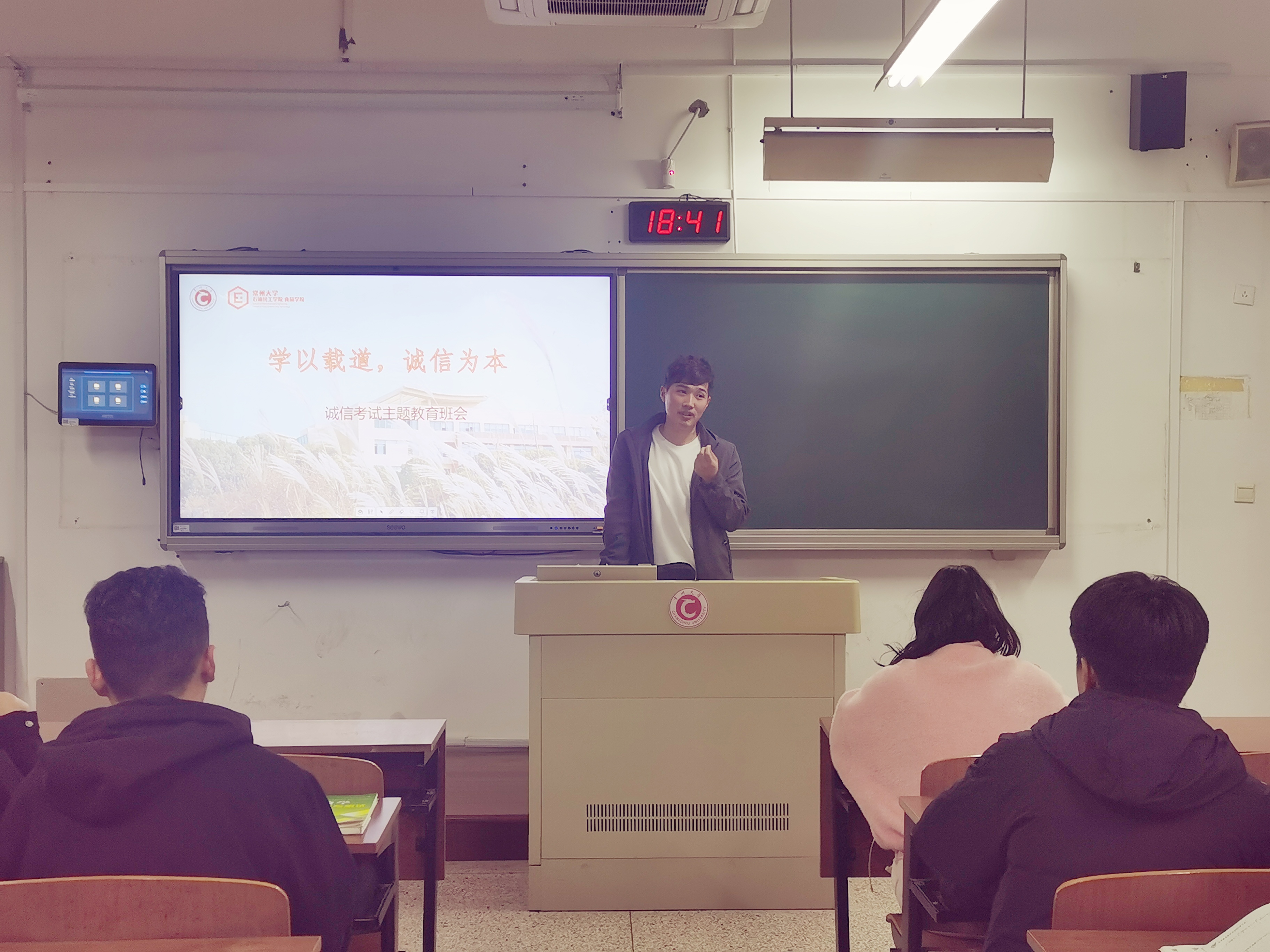 班會上,各班輔導(dǎo)員和班主任首先帶領(lǐng)同學(xué)們學(xué)習(xí)了學(xué)生手冊上有關(guān)誠信考試的相關(guān)內(nèi)容以及考試違紀(jì)、作弊處理辦法,讓同學(xué)們明白考試只是檢測所學(xué)知識的手段,是平時(shí)努力程度的集中反映,優(yōu)異的成績要靠自己的真實(shí)智慧和辛勤奮斗來爭取。同時(shí),他們強(qiáng)調(diào)了四六級和期末考試的重要性,四級過關(guān)是完成學(xué)業(yè)的必須要求,期末考試是檢驗(yàn)一學(xué)期學(xué)習(xí)成果的直接形式,是下一階段增強(qiáng)學(xué)習(xí)信心的重要支柱,囑咐同學(xué)們要抓住考試前的這段時(shí)間,認(rèn)真復(fù)習(xí),積極備考,多與同學(xué)、老師溝通,及時(shí)解決學(xué)習(xí)上的難點(diǎn)和障礙,要合理安排作息時(shí)間,要樹立主動學(xué)習(xí)、自主學(xué)習(xí)的意識,希望同學(xué)們都能以優(yōu)異的成績通過四六級和期末大考。此外,各班級同學(xué)們也結(jié)合學(xué)習(xí)生活實(shí)際闡述了自身對誠信的理解,剖析了誠信教育的必要性。隨后,各班級學(xué)生簽署了誠信考試承諾書,每個(gè)同學(xué)都在承諾書上莊重寫下自己的名字,簽署承諾書不僅是每個(gè)同學(xué)的鄭重承諾,更是同學(xué)們對誠信考試的決心。