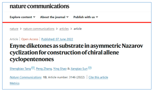 手性環(huán)戊烯酮骨架廣泛存在天然產(chǎn)物及藥物分子中。不對(duì)稱(chēng)催化Nazarovcyclization反應(yīng)是目前公認(rèn)的構(gòu)建手性環(huán)戊烯酮最高效、最便捷的方法。然而,目前發(fā)展成熟的Nazarov反應(yīng)底物種類(lèi)非常有限。底物種類(lèi)的局限,進(jìn)而限制了手性環(huán)戊烯酮的多樣性開(kāi)發(fā)。因此,探索和開(kāi)發(fā)新型的Nazarov反應(yīng)底物具有重要意義。