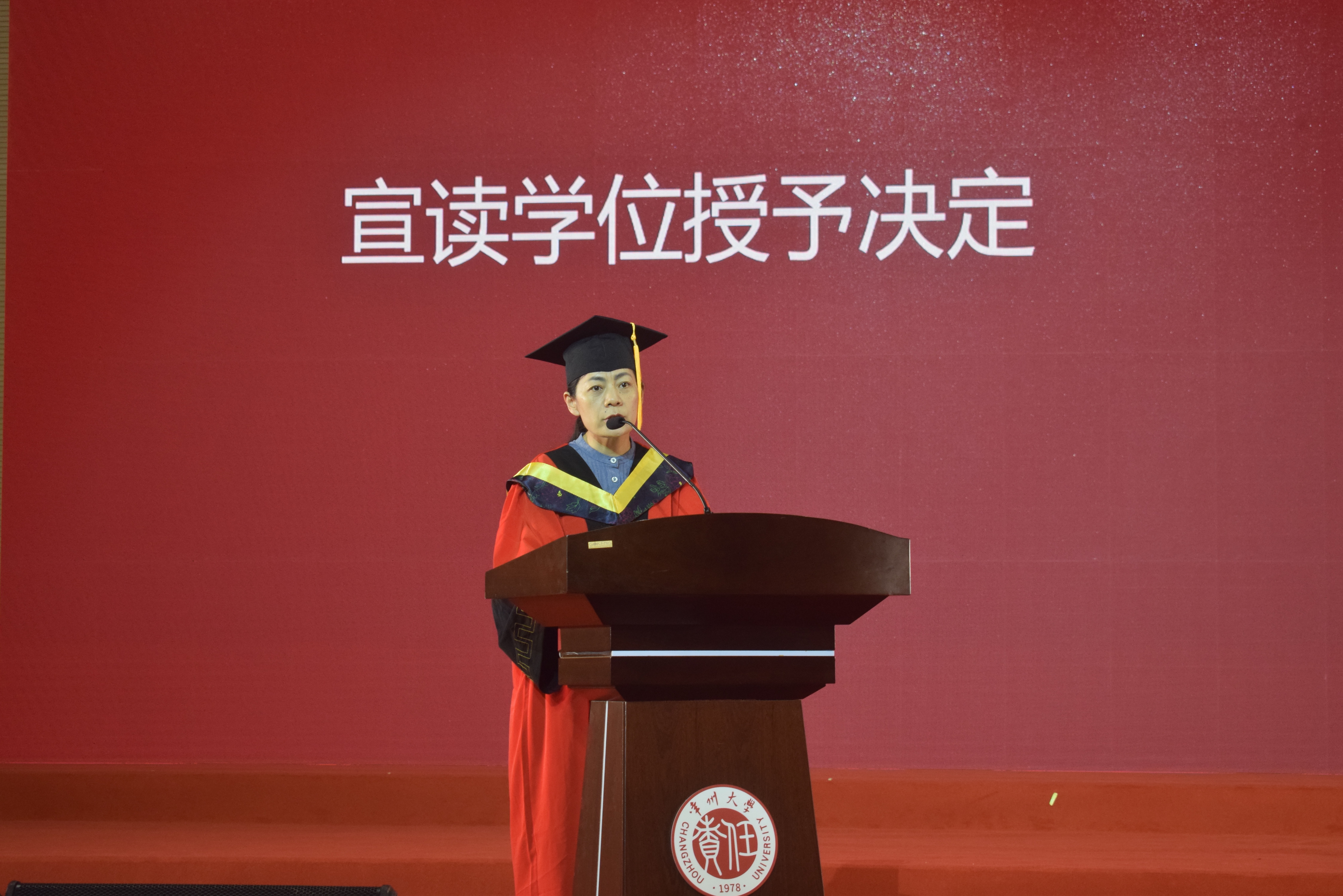學(xué)位授予儀式上學(xué)位委員會(huì)成員為畢業(yè)生們撥穗正冠,院長鐘璟代表全體教師對(duì)畢業(yè)生們表達(dá)了殷切的祝福,愿同學(xué)們面向未來,矢志奮斗、行而不輟;堅(jiān)定目標(biāo)、勇往直前;傳承創(chuàng)新、勇闖新路。
