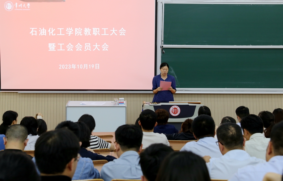 2023年10月19日下午,石油化工學(xué)院在教學(xué)樓W9階召開2023年教職工大會暨學(xué)院工會會員大會,學(xué)院黨政領(lǐng)導(dǎo)、分工會主席以及全體教職工參加會議,黨委副書記劉茂燦主持會議。