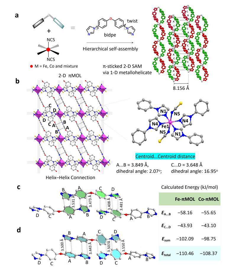由于原子利用率的提高和結構明確的電子轉移過程,用于構建先進催化材料的二維金屬有機層(MOL)的層級自組裝引起了人們的極大興趣。然而,通過層級自組裝過程構建具有單層/少層厚度的原子級精確的光催化材料,仍然是一個重要挑戰(zhàn),主要是因為傳統(tǒng)的非共價相互作用難以控制復雜的長程有序過程。近日,常州大學石油化工學院吳大雨教授團隊,成功構建了自組裝單層π粘附二維框架材料(Fe/Co/FeCo-πMOL),作為高效的原子級催化劑,以期實現(xiàn)碳資源的高效利用和溫室氣體的轉化。相關研究工作以題為“π-Sticked Metal?Organic Monolayersfor Single-Metal-Site Dependent CO2 Photoreduction and Hydrogen Evolution Reaction”發(fā)表在材料科學領域頂級期刊Small(DOI: 10.1002/smll.202309194)。