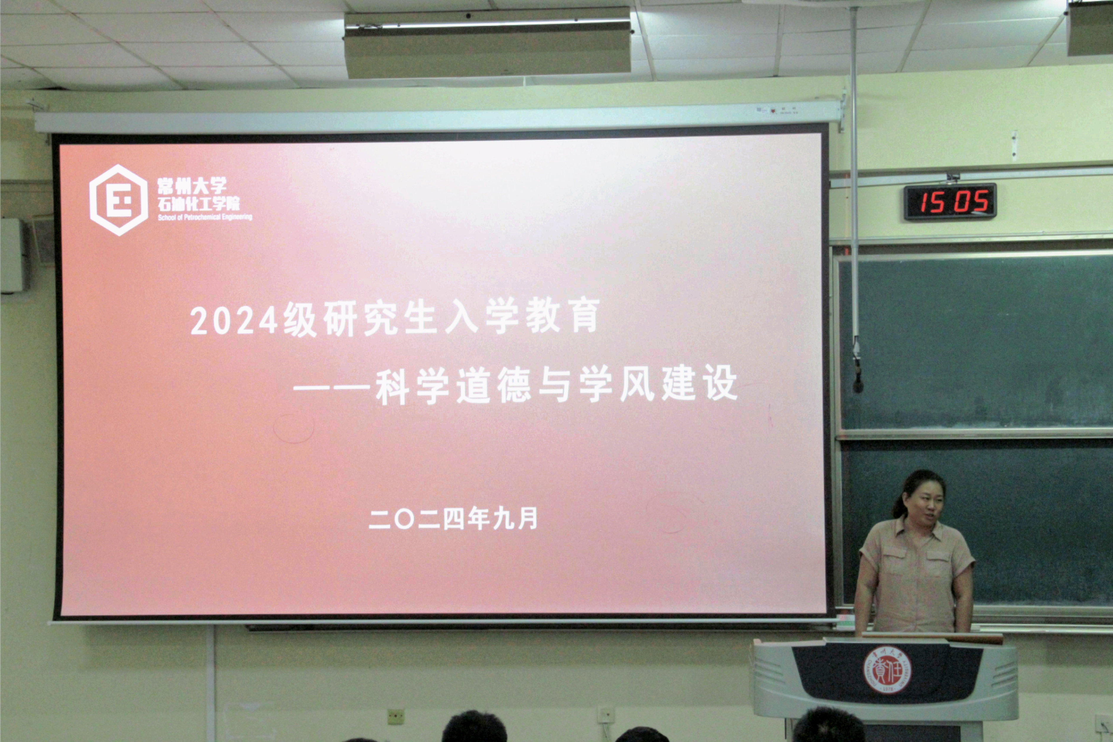 會上,趙彩霞首先向新生簡要介紹了常州、常州大學(xué)和石油化工學(xué)院,然后根據(jù)自身經(jīng)歷,分享了研究生學(xué)習(xí)科研的特點,提醒大家及時確立目標(biāo),盡早做好規(guī)劃,接下來,趙彩霞對研究生日常事務(wù)管理規(guī)定、評獎評優(yōu)辦法等政策文件進(jìn)行詳細(xì)解讀,希望大家嚴(yán)守法規(guī)校紀(jì)紅線,筑牢安全健康底線,未來三年積極進(jìn)取,在常大學(xué)有所成,實現(xiàn)自我。
