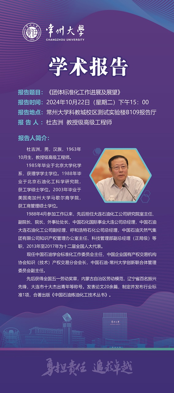 【學(xué)術(shù)報(bào)告】10月22日學(xué)術(shù)報(bào)告—杜吉洲教授級(jí)高級(jí)工程師