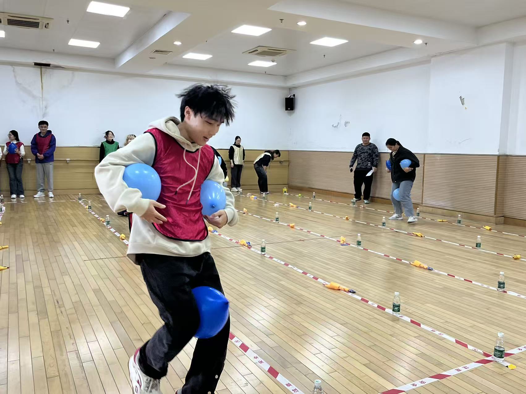 運(yùn)動(dòng)會設(shè)置了小豬快跑、珠行萬里、蒙眼對決等五個(gè)別具創(chuàng)意的項(xiàng)目,不僅考驗(yàn)著個(gè)人在速度上的爆發(fā)力與技巧上的精準(zhǔn)度,更在一次次協(xié)作闖關(guān)過程中,悄然培養(yǎng)了團(tuán)隊(duì)成員間協(xié)作配合的默契。經(jīng)過近兩小時(shí)的激烈角逐,最終“金隊(duì)”以總積分38分榮獲一等獎(jiǎng),“紅隊(duì)”與“黃隊(duì)”分別獲二、三等獎(jiǎng)。此次大賽為我院研究生搭建了切磋競技、釋放青春活力的平臺,更凝聚起團(tuán)結(jié)向上的精神力量。無論是選手們?nèi)_刺的身影、隊(duì)員間的默契配合,還是場邊觀眾此起彼伏的加油吶喊,都定格成本次活動(dòng)最鮮活動(dòng)人的記憶。