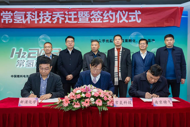 12月20日上午,常州大學(xué)孵化參股企業(yè)江蘇常氫科技工程研究院有限公司(以下簡稱“常氫科技”)舉行喬遷及簽約儀式,黨委副書記、校長陳海群,江蘇省化工行業(yè)協(xié)會會長趙偉建,常州市城市建設(shè)(集團(tuán))有限公司總經(jīng)理劉龍才,常州市科教城管委會副主任路軍方,常州科教城投資控股集團(tuán)有限公司黨委書記、董事長錢立鋒出席活動??平坛枪芪瘯?、常州大學(xué)、常州城建集團(tuán)、投資機(jī)構(gòu)等單位負(fù)責(zé)人參加活動。