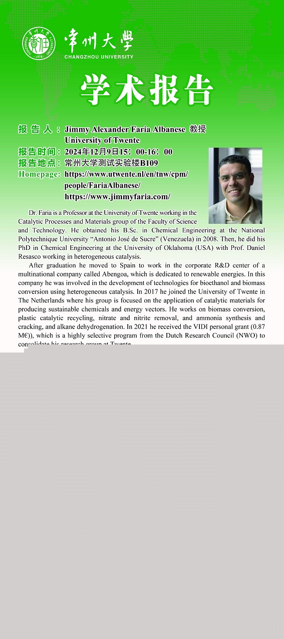 | 【學術報告】12月9日學術報告—Leon Lefferts教授、 Jimmy Alexander Faria Albanese教授 University of Twente |