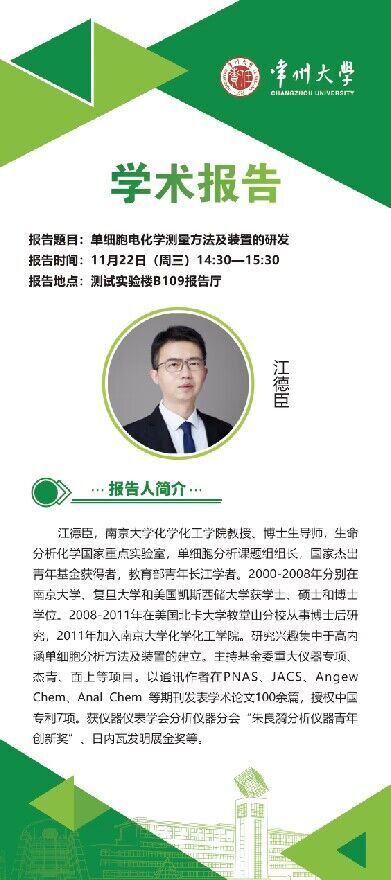 | 【學(xué)術(shù)報(bào)告】11月22日學(xué)術(shù)報(bào)告——江德臣教授,南京大學(xué)化學(xué)化工學(xué)院 |