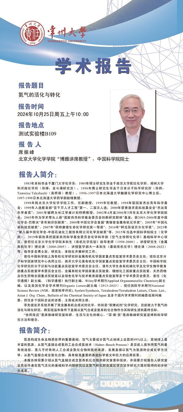 【學(xué)術(shù)報(bào)告】10月25日學(xué)術(shù)報(bào)告——席振峰院士,北京大學(xué)